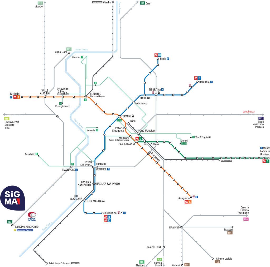 If you’re not taking a bus or taxi directly to your end destination, the easiest (and cheapest) option is to take the train from the Fiera Roma to the city centre and then carry on by metro, bus or taxi.  FL1 Regional train tickets are just €1.00.  Board the FL1 Regional Train (direction Orte or Fara Sabina) from Fiera di Roma and get off at Ostiense. Cross over the walkway to Piramide Station and use your complimentary SiGMA Metro Train Ticket to continue on any Metro line toward your destination.